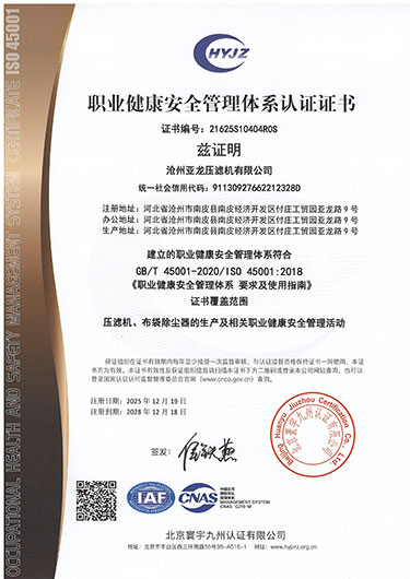 公司名称:沧州亚龙压滤机有限公司 公司地址:河北省南皮县付庄工业开发区 电话:0317-8189922 传真:0317-8189923 手机:13831723798 网址: