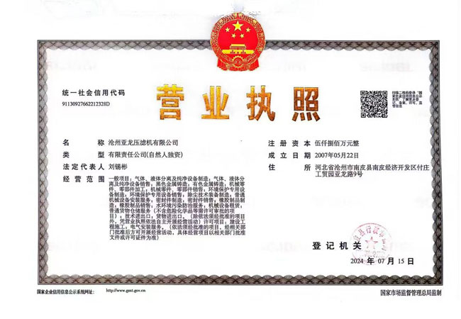 公司名称:沧州亚龙压滤机有限公司 公司地址:河北省南皮县付庄工业开发区 电话:0317-8189922 传真:0317-8189923 手机:13831723798 网址:
